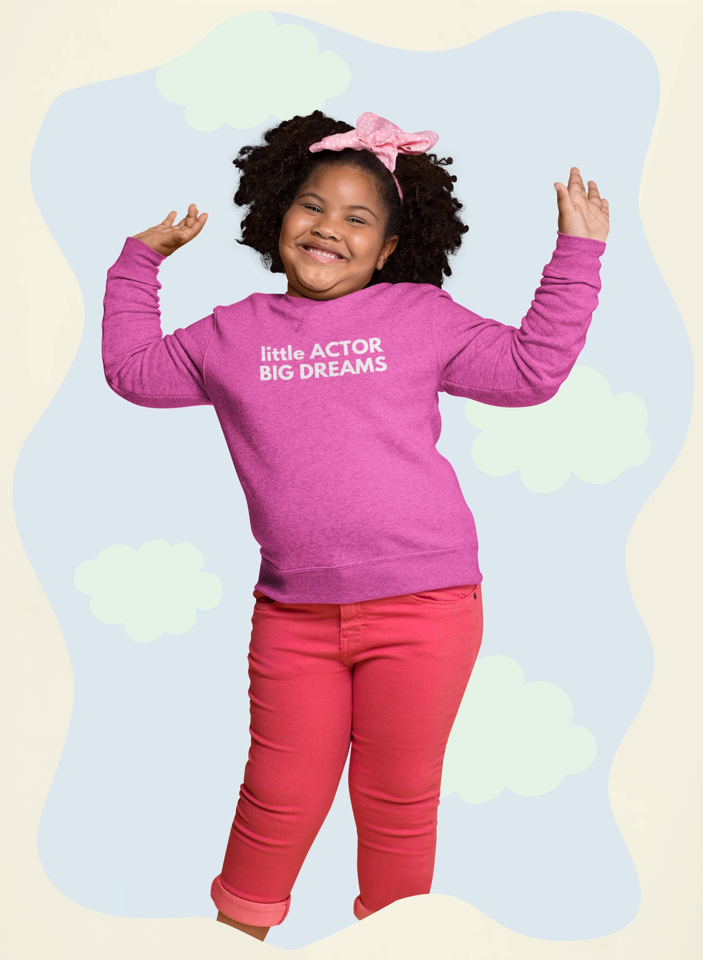 Little Actor, BIG DREAMS is made for kids who love the spotlight and dream big. Perfect for stage, screen, or playtime, this cozy sweatshirt celebrates creativity and confidence in every future star.
